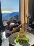 Были в ресторане Высота в непогоду, когда облака затянули вершину, соответственно ресторан был заполнен туристами. Вписали в лист ожидания, предупредив, что время ожидания составит 20 минут. Пригласили очень быстро, по кухне задержек не было. Официантов явно не хватало, сказывалось это на обслуживании - уставшие. Принесли разные чайные пары, не самый горячий суп, закончился имбирь и облепиха. Блюда невероятно вкусные, особенно хинкали из свинины и говядины в перечном соусе. Чай апельсин/клубника в меру сладкий и согревающий. После прогулки по горам идеально + красивый вид из окна😍