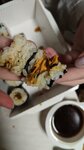 Салат с жареным камамбером принесли без соуса. Салат был абсолютно пресным. Официант отказался решить проблему, вместо этого пригласил администратора Варвару. Которая в свою очередь пыталась убедить меня, что соус в салате есть, вместо того, чтобы просто донести его. Ролл Мастер Краб бы приготовлен таким образом, что разваливался еще в тарелке. Рол Наруто Курама в реальности абсолютно не похож на изображение в меню. Администратор Варвара, во время уборки тарелок со стола произнесла "Давайте сюда ещё тарелки, я же вижу они у вас есть". Как будто-то мы в столовой самообслуживания пытаемся спрятать грязную посуду 🤣🤣🤣. Ну и вишенка на торте, грязная ложка.