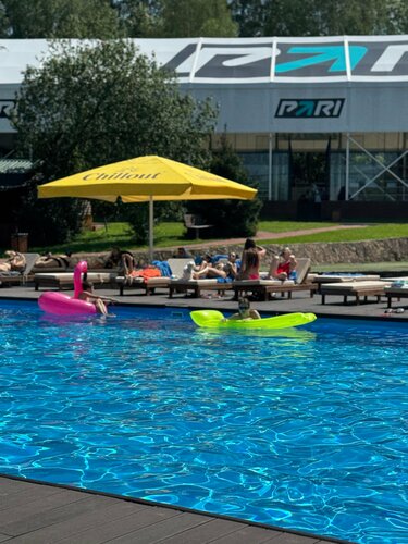 Проводили в клубе выходной день! Арендовали корт играли в популярный сейчас падл теннис. Хорошее местечко, мы еще доплатили за обычный бассейн и целый день провели в клубе. Только цены в кафе на территории клуба очень кусаются. Бери все с собой бутерброды и кофе, чай в термосе. Нас выручила Пятерочка, которая находится напротив клуба. Что касается территории, то она красивая, ухоженная, бассейны хорошие. Постоянно убирают вокруг бассейна