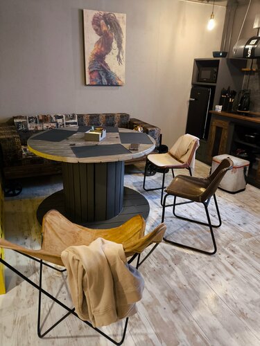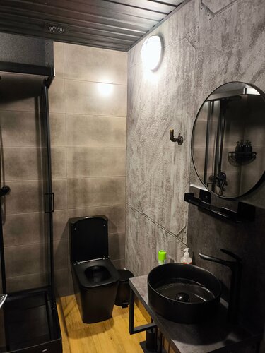 Это чистой воды арт объект, в котором смело можео было бы открывать музей. Возвращались с горнолыжного курорта Архыз, решили остановится переночевать в Вассере, тк цены и отзывы были на очень хорошем уровне. Заранее забронировали номер в яндекс путешествиях. Взяли номер с удобствами, как оказалось он практически новый, не видавший еще постояльцев. Отмечу, что заселение 24/7, и возможно размещение с собакой. Номер превзошел все наши ожидания. Это просто чудо дизайнерской мысли!!!. Я сам рукастый, знаю и умею многое в строительстве и ремонте, скажу так: отделка и дизайн сделаны как для себя. Очень много внимания к деталям и мелочевке в каждом элементе, начиная от фактурных красок, броширования древесины до мелкой фурнитуры и скобяных изделий. Тому кто это делал огромный респект!!! Я понимаю сколько сил, времени и средств было потрачено на все это. Вообщем словами это не описать, лучше забронировать и посмотреть номер своими глазами, думаю вы не разочаруетесь и останетесь в таком же восторге как и вся моя семья, от сына 8 лет до бабушки 68 лет. Отель расположен не далеко от федеральной трассы М4 ДОН. В шаговой доступности большой ТЦ , ларьки с фастфудом и магазин Магнит. Своя огороженная дворовая территория с парковкой. Доброжелательный персонал. Единственное чего я не обнаружил в номере это чайных ложек, но это мелочи, которые владелец просто упустил из вида, реализуя свой творческий порыв. Так держать!!!. По возможности будем заезжать сюда еще.