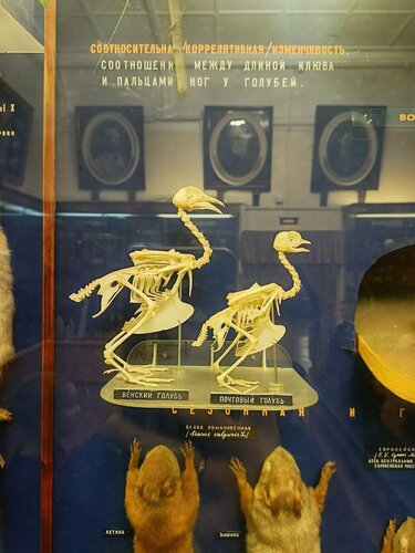 Посещали с дочкой в прошедшие каникулы в рамках олимпиады МПУ. первые залы прям базовые - "птички, рыбки, зайчики", а вглубь первого этажа - внутренние органы и системы человека. много формалиновых экспонатов. вот тебе аппендикс нормальный, а вот воспаленный, вот сердце гипертрофированное, а вот нормальное, хочешь в развёртке, хочешь в разрезе. вот тебе собака, которую объединили с головой другой собаки системами кровообращений (и не только) и вторая морда тоже гавкала и скалилась, а потом "общая" собака умерла от заражения крови. вот пищеварительная система котёнка, а вот нервная система новорожденного вид со спины. между первым и вторым этажами есть "отбивки" в виде маленьких выставок: одна про А.М.Белашова, вы могли видеть его работы во внутреннем дворе Палеонтологического музея, а вторая "Внимание: игрушка" - про игрушки в историческом контексте и узоры/окрасы, как динамическую систему в природе. Баба-берегиня кайфовая абсолютно, без предрассудков. на втором этаже музея всё про динозавров, окаменелости и человека разных времён. большая часть залов была закрыта на занятия под экскурсионные группы. в общем, наука такая наука. отдельно хочется отметить приятную сувенирную продукцию музея. при наличии Москвёнка - его нужно отсканировать в кассе. когда идёт группа - это занимает довольно много времени. смотрители залов бодрые, активные, вечно что-нибудь регулируют, отвечают на вопросы, консультируют по вопросам олимпиады.