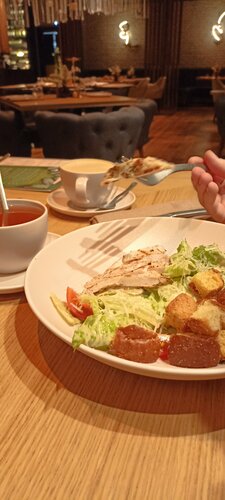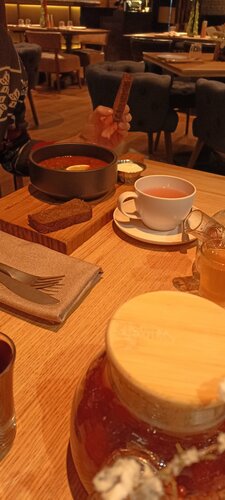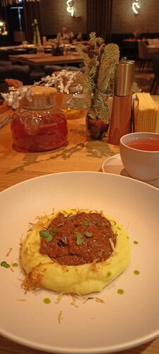 Заведение существует давно, но удалось посетить его только сейчас. Удобное расположение с автоматизированной парковкой. Прекрасный интерьер: обожаю кладку красного кирпича и растения. И того, и другого здесь в достатке. Высокие потолки, удобные столы и стулья, зонирование, оформление подоконников - блеск. Хотелось бы здесь устроить фотосессию. Возможно ли это? Ценник основного меню выше среднего. Блюда из меню обеда очень вкусные, порции приемлемые, цены адекватные. Персонал приветливый, отдача блюд быстрая. Есть пледы. Хотелось бы горячую воду в санузле для полноты прекрасного :)