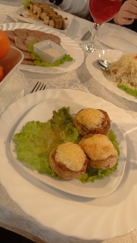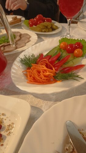 Отмечали в ресторане юбилей. Ресторан небольшой, поделён на два зала. В большом несколько столов, танцпол, живая музыка (из-за в принципе небольшой площади - очень громко, иногда это критично). Малый зал более приватный. Гардероб - крохотная комната в центре, куда ведут от входа. Туалеты по одной кабинке на женщину и мужчину. Оформление красивое, но место именно что для юбилеев, поминок, небольших свадеб. Детских принадлежностей не заметила. Персонал приветлив, оперативен, опрятен и дружелюбен. Все четко и быстро, претензий нет. Можно принести с собой заранее напитки, торт, другие готовые блюда. Парковки нет. Или есть ее подобие... Блюда разнообразные, вкусные, но местами бывает откровенный пересол. На вкус и цвет, конечно. Заведение существует долго. Желаю продолжать существовать!