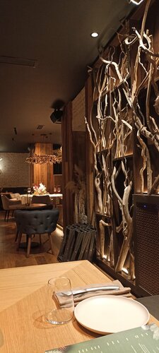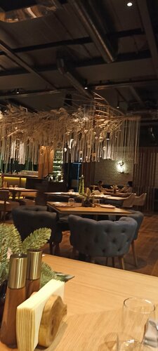 Посетили заведение по рекомендации. Это свежая концепция, бывший ресторан "Встреча". Новогодние праздники, людей в субботу мало. Атмосфера приятная (темный цвет, приглушённый свет, много деталей), антураж соответствует названию заведения, все чистенько. Надеюсь, за пылью будут следить :) Понравилось, что официанты участвующие: следят за состоянием столика, убирают все вовремя, интересуются, все ли понравилось и что не так, если долго не трогаешь блюдо. Меню знают, могут рекомендации дать. Не хватило в меню описания блюда; что острое, а что нет, например. В туалете нет места, куда кидать использованные полотенца для рук. Не увидела детских стульчиков, хоть заведение и не похоже на семейное. Очень понравилось наличие раскладных табуретов для сумок. Еда вкусная. Кухня мясная. Подача красивая. У посещению рекомендую. Процветания заведению!