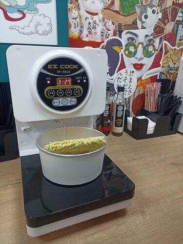 Атмосферное место. Кафе самообслуживания, где ничто не ограничивает твой вкус. Лапша подписана по степени остроты. Непонятные штуки для вкуса тут же объясняет официант - обаятельная девушка с чувством юмора и такта. Соевое мясо, грибы, всевозможные соусы, чипсы, сухарики, водоросли (?), сладости (моти очень вкусные), яйца в мелких вакуумных упаковках в лучших традициях Востока. Огромное количество всевозможных напитков и вкусов. Понравился молочный манго. Инструкция по готовке, микроволновая печь, раковина, мусорки раздельные, кофейный аппарат. Штуки по варке лапши - впервые такие вижу, очень интересно. Жаль, места немного и кассовый аппарат самообслуживания всего один. Есть система скидок за оформление карты сразу (100 р.) или если приходишь в косплее. Яркий дизайн, много мелких деталей, окунающих в традиции Японии, Кореи... Экран с концертом к-pop. Высокие стулья, барные стойки по стенам и в центре. Помещение не большое. Для ценителей и тех, кто ищет новое. Не встречала подобной идеи места в Иваново. Желаю долгих лет процветания!