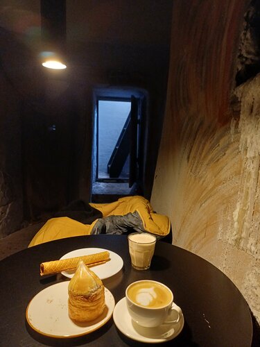 Атмосферно, загадочно, спокойно . Особенно нижний зал. Центр Москвы, а тут можно отрешиться и насладиться выпечкой с кофе. Вкусно. Цены средние по городу. Шустрый и доброжелаткльный персонал. Минус звезда : за неудобство крутой лестницы в ниж.зал, особенно когда в руках еда/чашка кофе.