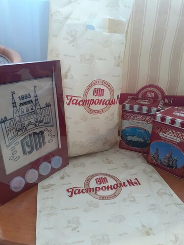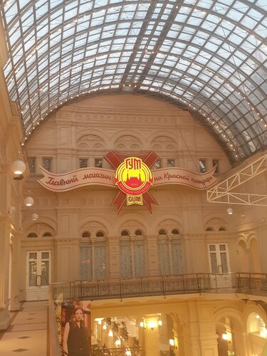 В Москве по рабочим делам, настроение на пике, погода просто - океан! Звонит старшая дочка, говорит: мне в этот раз ничего не нужно, привезите, только пакет из ГУМа! Отнюдь, неожиданно, ну что делать, снова едем на Красную площадь, идём в главный магазин Страны, совершаем покупки, продавцы всё бережно упаковывают в пакеты!) Как магазин данное место нами совершенно не воспринимается, это больше музей, дворец, объект архитектуры и истории!...