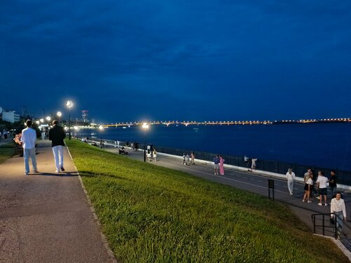 Пляж покорителей Волги, местные называют "пляж покорителей тархуна". Это из-за того, что в первый же год вода цвела так, что была зеленого цвета. Мы живём рядом с набережной, очень часто гуляем там. Считаю, что наша набережная одна из самых красивых и функциональных: есть много скамеек любых конфигураций, качели, детские площадки, спортивные, для трюков на самокате и скейте, бесплатный летний кинотеатр, правда одно только кафе (я говорю о стороне пляжа, у горбатого моста их много), есть "Жираф-вафля". Сейчас заработало колесо обозрения 🎡, поздним вечером сидя на шезлонге у Волги чудесно наблюдать как она подсвечивается праздничной иллюминацией. Что касается пляжа тоже не хуже чем на юге, а даже и лучше: кабинки, душевые во весь рост и только ноги помыть, кабинки для переодевания, шезлонги, навесы, даже пройти чуть дальше есть площадка для пляжного волейбола. Но мы там не купаемся. Так как мы живем рядом, то видим, что буквально в нескольких метрах от пляжа находятся два слива. Зимой даже лёд желтого цвета. Конечно есть понтон, который перекрывает, но... все находится по течению. Не хочу ничего плохого говорить, но это мое субъективное мнение. Сама была бы рада ходить в купальнике на пляж из дома. А в остальном всё просто чудесно.