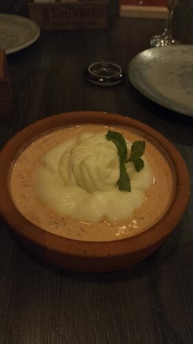 Вчера посетили ресторан, остались только положительные ощущения. Выбрали для ужина места на улице, благо ещё не холодно. Меню принесли быстро, на все вопросы по специфике блюд дали ответы. Брали лобио, люля из баранины, хинкаль из сыра , грузинскую брускетту и 200 гр местного самогона. Лобио прекрасно с гурийской капустой, фасоль тает во рту. Брюскетта делается из хлеба Пури, который выпекают прям в ресторане и начинка из огромного количества сыра, помидоров, грибов и курицы. Хинкаль из сулугуни очень интересное блюдо, один соус чего стоит, мне кажется можно подавать один соус и хлеб все) самое вкусное это были люля из барашка, нежнейшее мясо, таких вкусных люля мы даже в Армении и Грузии не ели, мое почтение повару. Ну а самогон под такую еду просто обязателен из фейхоа и айвы. Будем в Кисловодске, только к вам на ужин