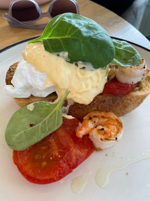 Завтракали в выходной день на веранде. Народу было немного, а мы были очень голодные и перепробовали кучу всего. Пашот с креветками на тратине - достойно. Брускетта на чиабатте с баклажаном и томатами (и такой же салат) - очень вкусно. Потрясающий десерт - похожий на чизкейк тарт из ряженки, название забыла, но просто тает во рту! Обслуживали очень быстро, официантка отлично знала меню и готова была подсказать что-то. В остальных заведениях сети пока не была, но конкретно здесь все и вкусно, и быстро, и цены не кусаются.