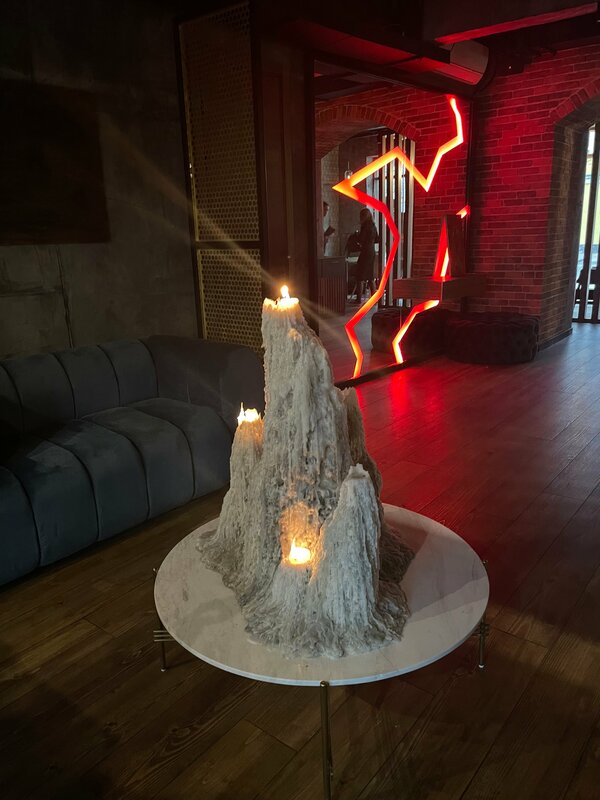 Все было так вкусно, что мы не успели сфотографировать еду)) Потрясающие, просто божественные брускетты с рваной свининой и карамельным луком и со страчателлой и баклажанами. В гарнирах великолепный картофель на углях с сыром и копченой сметаной. Подруга очень хвалила пасту (вроде, она брала Бородино). Пинца с грушей и дор блю вполне достойная. Крылышки барбекю, на мой вкус, жирноваты. Сырное ризотто не советую, блекнет по сравнению со всем остальным - разваренный рис, вкус какой-то неяркий. Вкусный десерт с эффектной подачей - Киевский торт. На втором этаже и на веранде также подают кальянное меню. Суматоху вносят бесчисленные стажеры, очень долго ждали, пока нас проводят к столику. Но, в целом, очень понравилось)