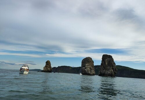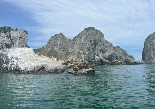 "Морское путешествие 2 августа 2025 года превзошло все ожидания! Хочу отметить высокий уровень организации: все продумано до мелочей, от трансфера до меню на стоянке. Капитан Александр – настоящий профессионал своего дела! Он не только виртуозно управляет катером, но и прекрасно знает побережье, умеет находить лучшие места для рыбалки и наблюдений за дикими животными. Благодаря ему мы увидели косаток, сивучей, птичьи базары и невероятные пейзажи. Этот человек не просто водит катер, он дирижирует волнами! Скорость такая, что косатки завистливо смотрят вслед. Если вы ищете морского волка, который знает все секретные места побережья и умеет превратить обычную поездку в незабываемое приключение, то вам именно к нему! А еще он клево шутит))) Уха и крабы в бухте Русской – просто восхитительны! Это было незабываемое приключение, и я настоятельно рекомендую всем, кто хочет познакомиться с красотой Камчатки, отправиться в путешествие с капитаном Александром!"