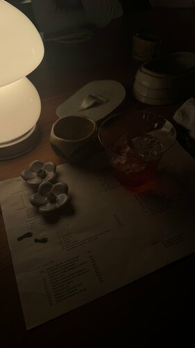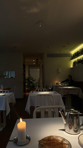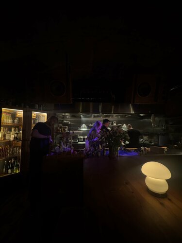 Приятное, тихое минималистичное место Жаль связь плохо ловит, полный digital detox Кайфанула от деталей — световые акценты, декоративные элементы, общий минималистичный уют, живописные чипсы для эстетичного тар тара — я визуал, меня порадовало чуть ли не больше, чем сам тар тар. Приятное драмматичное освещение, уходить не хотелось.