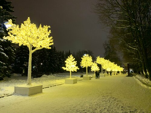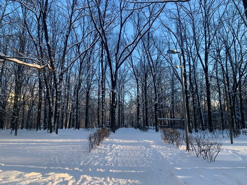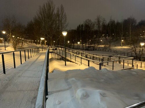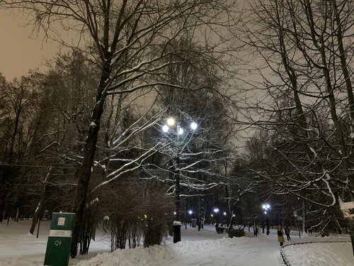 Парк просто очаровал меня красивыми видами. Красота неописуемая, зимняя сказка. Конечно понравился замок, прекрасно украшенный к новогодним праздникам. Рядом каток, который летом становится открытым бассейном и замечательная карусель. Парк расположен вдоль реки Яуза. Проложены дорожки, рядом с рекой деревянные и параллельно реке асфальтированные. Вдоль дорожек красивые фонари. Река не замерзает, много уточек. Красивый мост. Много скамеек и качелей, есть где присесть и отдохнуть. Много детей на ледяной горке. Вдоль Яузы проложена лыжня. Есть киоски, где продают кофе и легкий перекус. Работают теплые туалеты. Обязательно вернусь в этот парк летом.