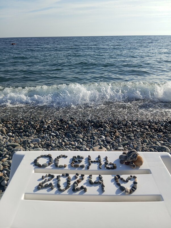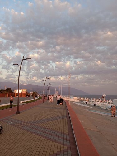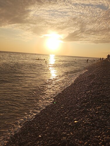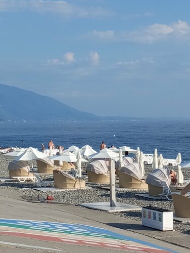 Хороший чистый пляж, народу не много, отлично отдохнули. Рядом виднеются горы Абхазии, красота! В следующий раз обязательно вернемся сюда. Всем рекомендую 👍