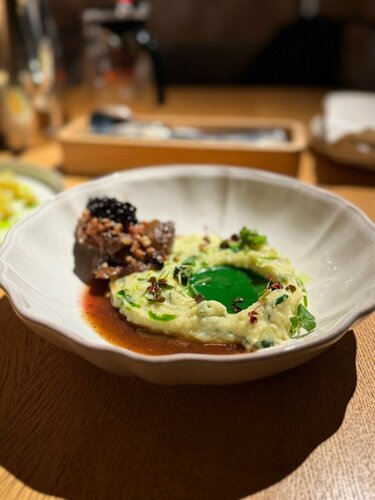 Это место — находка! Атмосфера в ресторане Neo удивительная: уют, стиль, внимание к деталям — всё располагает к тому, чтобы насладиться вечером в хорошем настроении. Особое впечатление произвела кухня: авторская интерпретация русских блюд, тонкий вкус, красивые подачи — всё очень сбалансировано и с душой. Особенно понравились: 🍽 винегрет с селедкой, 🥩 телятина с пюре и смородиновым соусом, 🍯 медовик, 🍰 чизкейк, 💫 и, конечно, десерт Атом — не только вкусно, но и визуально восхитительно! 🌟 Отдельное спасибо Вячеславу, нашему официанту. Он не просто принёс блюда, а создавал атмосферу — рассказывал о каждом из них с теплотой и интересом, как будто проводил личную экскурсию по меню. Это очень ценно. 💬 Обязательно вернёмся — хочется попробовать всё. Прекрасное место для неспешного, вкусного и эстетичного ужина.