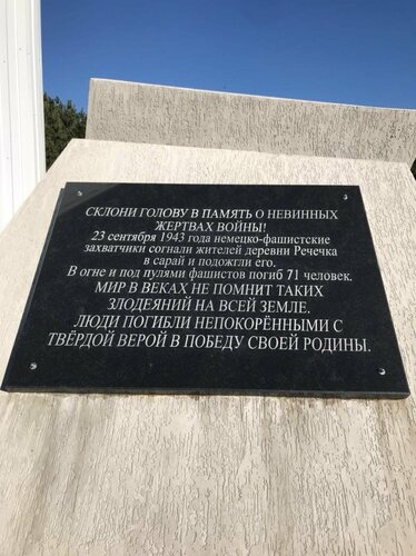 Был на мемориальном комплексе «Речечка». Поехал специально из Москвы, услышав историю от знакомых. Увидел мемориал вдали от населённых пунктов, который содержится в очень хорошем состоянии и вызывает чувства сострадания, более глубокого понимания истории. К своему стыду, будучи рожденным в Клинцовском районе в семье ветерана ВОВ, по сути в нескольких километрах от места расположения мемориала, ничего не знал о трагедии, которая произошла в этой деревушке во время Великой Отечественной войны. Ни из уст своих родителей, бабушек и дедушек, соседей тоже ничего не получил. Очень жаль, что и в изучении истории родного края этот факт был упущен. До этого визита я ярко представлял события в белорусской Хатыни, знаю о других сожженных деревнях в Беларуси. Помню и вынес из школы, что в Брянской области более 75 тысяч мирного населения были убиты фашистами, более 155 тыс угнаны в Германию, более 1000 населённых пунктов сожжены. Моя мама чудом спаслась от угона в Германию, ценою риска жизни своего отца, моего деда, из тоже тогда оккупированной Коржовки-Голубовки. Здесь же, в Речечке, происходили события, когда фашисты-нелюди сожгли заживо целые семьи из стариков, женщин и детей. Погибли 71 человек, сгорели заживо 66 чел, а 5 человек расстреляны и похоронены на местном кладбище, которое находится рядом с мемориалом. Это кровавое событие произошло 23 сентября 1943 года, за 2 дня до освобождения Клинцов от фашистов. Ветераны, кто остался в живых, и вернулся с войны, не стали восстанавливать дома, так как это место было священным, и пропитано кровью их родных и близких! Мемориал находится в 20 минутах езды от Клинцов. Талантливыми авторами были созданы стилизованные памятники каждому дому, который сгорел, на каждом из них размещена мемориальная табличка, где указаны имена и возраст погибших . С одной стороны мемориала, где была первая улица, установлены стилизованные ворота, на другой улице - символы русских печей. Увиденное прошибает с головы до пяток, кровь закипает от того, что пришлось испытать этим страждущим! Спасибо всем: тем активистам, кто изучил историю этого бывшего поселения и остался неравнодушен, автору мемориала, архитекторам, организациям, и руководителям, которые увековечили память погибших! Настоятельно рекомендую к посещению каждому взрослому и детям, особенно, проживающим в Брянской области!🙏🏻🙏🏻🙏🏻