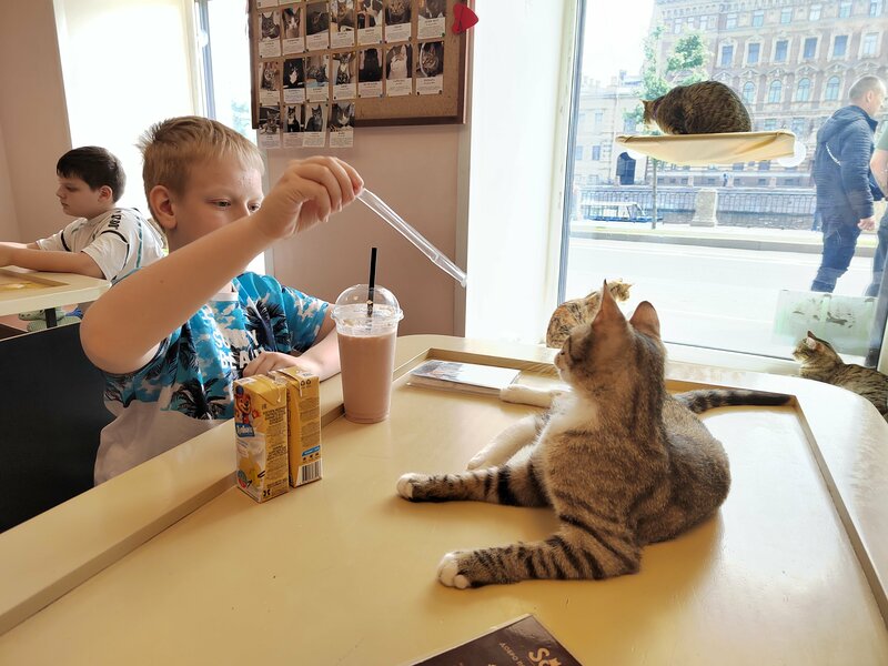 Место, где можно всласть нагладить пушистых мурчащих котиков, выпить вкусный кофе или чай с печеньками. А понравившегося котика можно взять домой. Минус в том, что хочется забрать их всех)