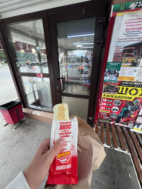 Из плюсов только место. Захотелось съесть шавуху, но получил сплошное разочарование. Обслуживание грустное - продавец залипала в телефоне и пришлось ждать пока она с кем то там по переписывается. Еда химозная, есть невозможно. Курица в шавухе водянистая, какая то вареная. Разочарован целиком.