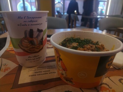 Очень крутое заведение, прям настоящие татарское место для ознакомления с традиционной едой Татарский чай с молоком брала это просто сказка, а их кыстыбей