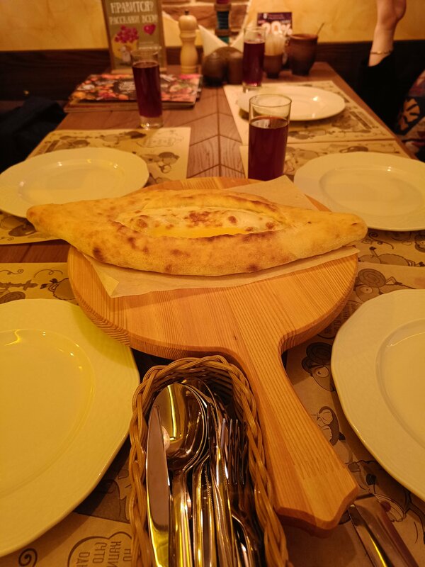 Ресторан очень атмосферный, большое меню, вкуснейшие блюда и напитки. Персонал очень дружелюбный, все приветливые. Время ожидания блюд примерно 20 минут. Понравилась подача комплиментов - вино в роге))
