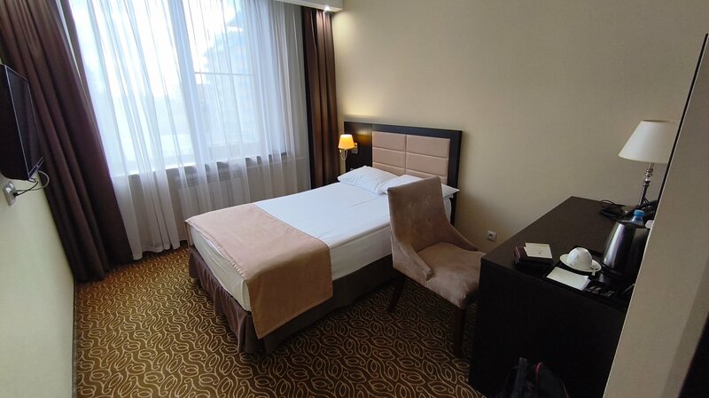 Все понравилось. Номер с мягкой кроватью, все чисто, комфортно. Стол рабочий, розеток хватает, холодильник, чай, кофе в пакетиках, чайник. Умный телевизор - кроме самого ТВ ещё все услуги, информация в нем. Завтраки - шведский стол на любой выбор. Персонал вежливый. Рекомендую!