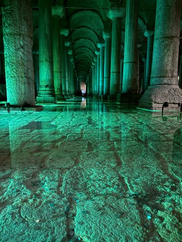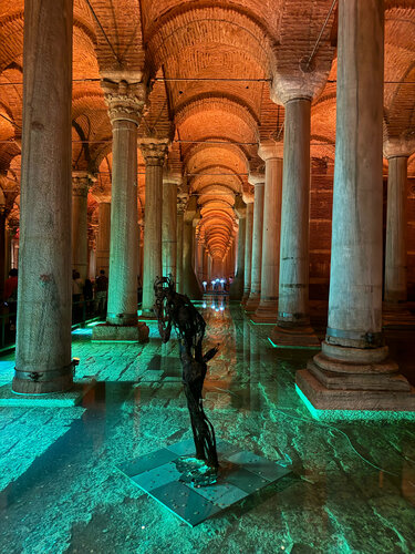 Невероятно красивое и масштабное место, которому на минуточку более 1500 лет. Оно стоит того, чтобы отстоять очередь, лучше приходить к открытию, тогда не придется стоять долго! 336 колонн подпирают красивый сводчатый потолок, среди них есть уникальные, например колонна в основании которой Медуза Горгона. Все это подсвечено красивой подсветкой, которая время от времени меняет цвет, и эта красота отражается в небольшом слое воды на полу. Тут снимали много фильмов, но самый известный, пожалуй «Инферно» по Дэну Брауну.