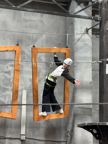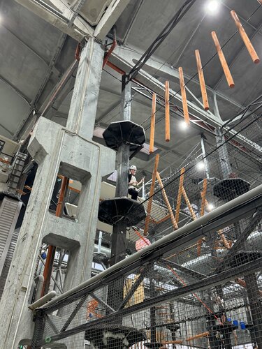 Огромный комплекс для любителей полазить на высоте! Ездил сюда с детьми, они были просто в восторге, за 4 часа излазили все, попробовали все трассы и зиплайны, а я в это время играл в настольный теннис. Есть несколько трасс для скалолазания. Есть небольшая площадка для совсем маленьких детей! Можно взять в аренду обувь. Также можно провести тут семейный праздник, для этого есть банкетные залы. Просторные чистые раздевалки, есть сауна. Персонал вежливый, отзывчивый, терпеливый, все таки работа с детьми))
