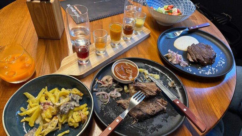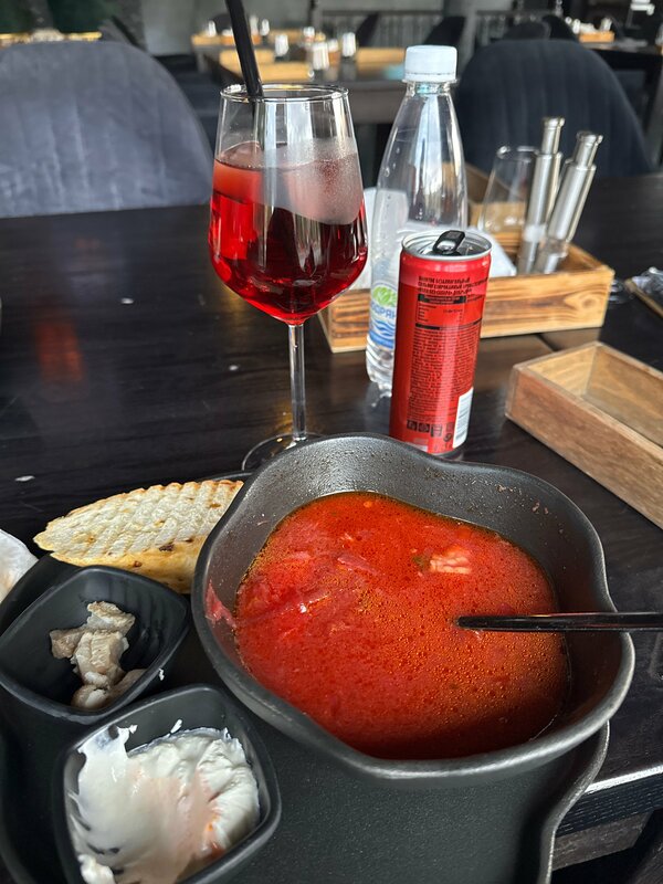 Когда туда пришли не было больших ожиданий! Однако место порадовала быстрым обслуживанием и вкусной едой! Борщ был нажористый и вкусный. Салат с говядиной был сделан из опаленных овощей с вкусной говядиной! Паста с морепродуктами просто офигенная! Приходите не пожалеете! Кстати тут есть кальян, но он только вечером!