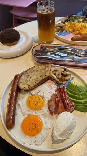 Сложно писать отзыв когда все классно! Отличные завтраки! Скрембл был просто великолепен! А пончик со сгущенкой это нечто, кучка начинки и хрусталика сверху ммм! Один недостаток - цена! Как итог: отличное место для завтрака всем рекомендую!