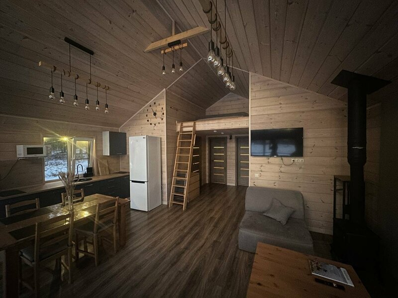 Прекрасное место, что бы отдохнуть компанией вдали от городской суеты! Приезжали с друзьями в декабре на выходные- остались особенно довольны сауной и бочкой🔥 Еще понравилось, что город и магазины в шаговой доступности, не смотря на то, что сам домик находится достаточно уединенно. Сам домик чистый и уютный🫶