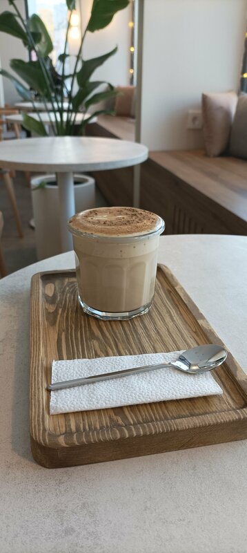 Красиво,стильно, мебель, светильники, девочки в форме. Кофе вкусный, насыщенный. Подача приятная. Цена конечно высокая, но есть за что