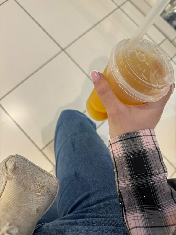 Ужасный напиток! Не сладкий совершенно. Чувствуется только горечь перезаваренного чая. Вода с горечью и привкусом апельсина за 435 руб. Ожидание больше 20 минут! Плюс ко всему даже не закрыли нормально крышку, облилась вся. Все липкое, рубашка, джинсы, руки. Просто ужас!