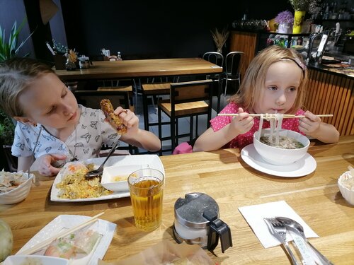 На картах было написано что работают, дверь тоже открыта и только когда голодные дети сели за стол к нам вышел человек и сказал, что сегодня они закрыты. Очень обидно- шли долго, дети хотели именно бабл ти. Так что отзыв такой только от обиды, про кухню мы ничего не знаем. Закрывайте дверь, если не работаете!