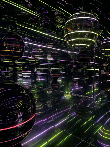 Очень странное место, честно говоря. 5 комнат, в которых нужно находится по 10 мин, но которые все можно пройти за 10 и этого будет достаточно. Сами комнаты маленькие, визуально пространство увеличивается за счет зеркальных стен. Ну и вся суть в световых эффектах и отражении. В целом, совершенно ничего особенного, только фото могут выйти эффектными) Все комнаты наполнены диодами, которые в опред порядке светятся разными цветами. Последний зал - с живыми орхидеями, подвешенными к потолку, которые то опускаются, то поднимаются. Тоже своеобразный, конечно, перфоманс. Вот и всё) и за это путешествие в сопровождении раздражающего голоса ИИ нужно заплатить почти 2К с человека - ну такое себе соотношение цена/качество. Повторно я точно не пойду, хоть и в понед как многодетной семье мне это удовольствие обошлось в 1К на человека. Ещё пошли в тайную комнату на чайную церемонию, где нам предложили поесть цветы😁чай с молоком и моти. За 900 р моти можно было ассорти заказать в кафе))) в общем, как по мне - не стоило это все потраченных денег🤷🏼‍♀️