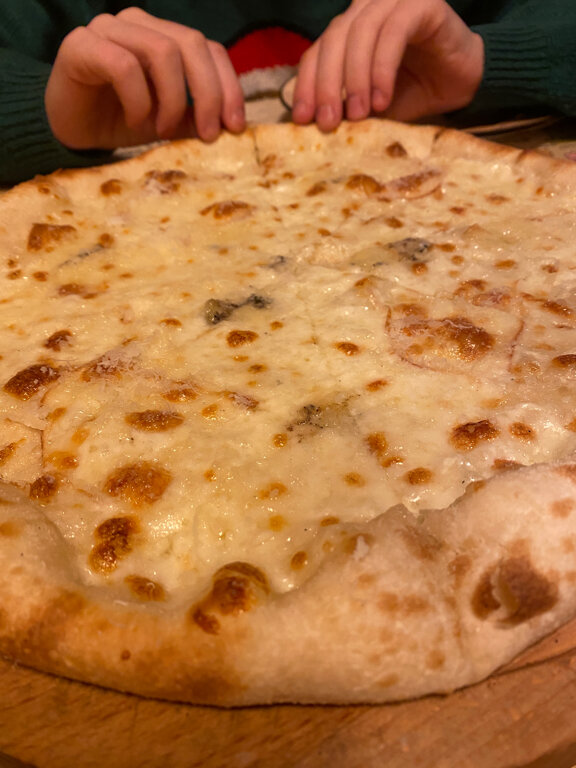 Прекрасная тягучая пицца четыре сыра, быстро, приятно, близко к дому:) и очень вкусное мороженое!!!