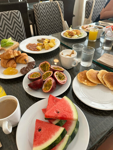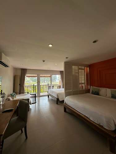 Были в отеле с 5.03-15.03 большой компанией девчонок, сняли 6 номеров! Первое, что напрягло по заезду, что с нас не предупреждая при заезде попросили с каждого номера депозит 300$. Это немного омрачило ситуацию, но договорились на 1000$ за все 6 номеров. На этой почве попросили апгрейд номеров и нам дали номера категории лучше чем бронировали, но в рандомном порядке и 2 номеров был даже выход к собственному бассейну, что было очень приятно в целом, так как бронировали просто стандарт😇 Номера. Номера хорошие все, да не новые, да можно починить что-то или исправить, но в целом для отеля 4* в Азии это очень хорошо! Еда. С едой конечно были в первый день проблемки. Мы брали питание по системе завтрак и ужин, предполагая, что будет шведский стол. Но в первый день на ужин его не было и нас кормили по меню, шоу да и только в исполнении официантов и повторов, в общем 2,5 часа мы просидели, чтобы получить всю свою еду😅 Дальше они уже накрывали шведский стол на ужин. Завтраки не плохие в целом, много фруктов, разных станций по наполнению. Нам не хватило обычных гарниров без всего. Картошка вареная было все время полусырая, рис не соленый, а больше гарниров и не было. В общем еда тоже для отеля 4* соответствует. Сразу хочу обозначить, что никаких напитков на ужин у вас не будет, только за деньги. На завтрак пейте сколько хотите!) Локация. Сам отель огромный, с большим бассейном разделенным на 2 части и с прямым выходом на чистейший пляж. Это огромный и просто жирнющий плюс этого отеля. Полежал, позагорал у бассейна и побежал купаться в море, сказала. Лежаков на пляже нет, но отель дает соломенные покрывала и в целом ок!) Все что нужно рядом - есть! Обменники, много массажек, аренда авто, фрукты, 7/11 и т.д. До всех достопримечательностей тоже быстро добраться можно. Уборка нормальная В целом из можно оценить отель на 3+/4 из 5 баллов✨ Для своей цены и локации в целом супер! Очень порадовало наличие Старбакса прямо в отеле и наличие нормального спорт зала.