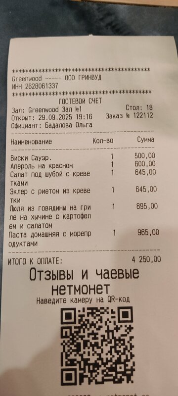 Да, тут вкусно, спорить с этим бессмысленно. Да, интерьер красивый. Да, официанты нормальные. Но ценник прям московский, будто на Патриках оказался. Будьте к этому готовы.