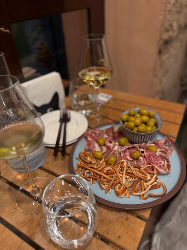 Хороший выбор «не магазинных» вин, профессиональный персонал, который помогает в выборе, есть небольшой ассортимент закусок, вместительный дегустационный зал и пара столиков с видом на ул. Конституции