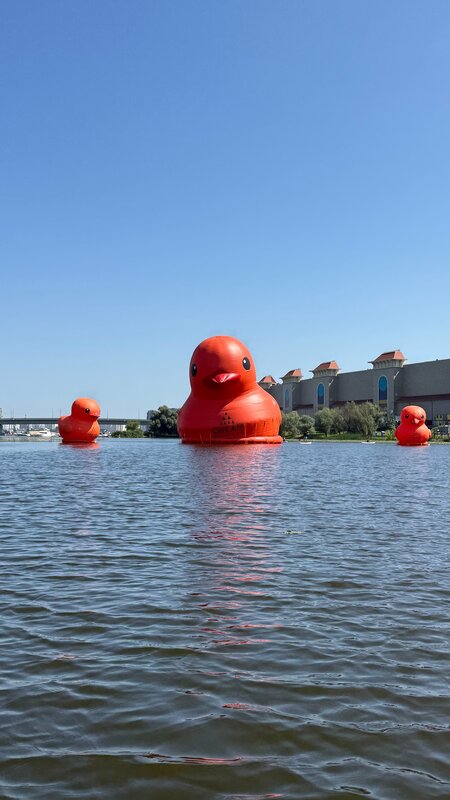 Катались тут на сап-маранах. Это такие сдвоенные сапы с крышей, двумя сиденьями и электромоторчиком. Плавать по затону комфортно, правда у уточек много тины и водорослей и пришлось несколько раз очищать винт.