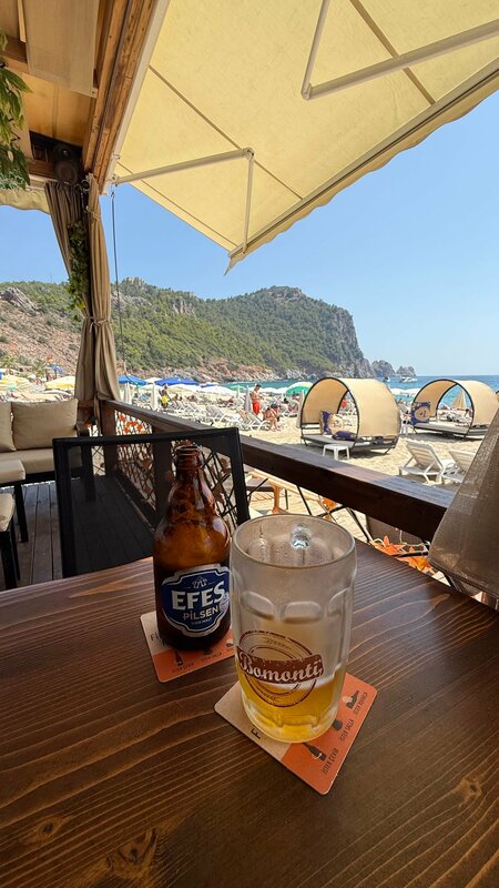 Посидела в тенёчке пока мои спутники купались на пляже Клеопатры. На веранде не жарко, приятный ветерок. Пляжный бар обычный, без выкрутасов.