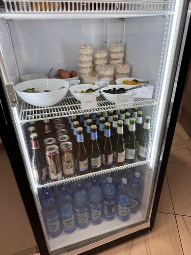 Это позор. Ну откровенно же похоже на благотворительную столовую. 08.02.26 на выбор седло курицы( ребята,ну серьезно?! Седло курицы?!),плов без мяса (пахнет рисом,но никак не пловом),сосиски свинина ИЛИ курица(это, прошу заметить, не выбор-просто они положили то,что было🤣) и греча. Фсе. Есть три вида сухих завтраков, запеканка творожная с таким видом,что брать ее не хочется. Два вида круассанов( типа ветчина и с джемом). Ах да, бульон куриный. Из напитков вода, добрый кола и апельсин,пиво производства С-Пб( а хотелось местного.где ж логистика то?!). Кофемашина устала от жизни такой и плюется на клиентов. Есть растворимый кофе жокей, насыпанный в стакан . В холодосе чуток маслин, кукурузы и зеленого горошка. Есть даже нарезанные помидоры и огурцы,но прям как украли. Удивило отсутствие элементарного кетчупа. Вид зала сильно уставший. Козжам линяет. Дисплей один и откровенно маленький. Либо рядом сел,либо подходи и смотри. Если бы заранее почитала отзывы, то приехали б в аэропорт попозже и не пошли в этот «повышенной комфортности» зал. А люди идут. Ну и да, девушке на ресепшен респект, что увидев нашу реакцию даже вида не подала и была приятна в общении. А ведь наверно иногда клиенты и высказывают свое недовольство.