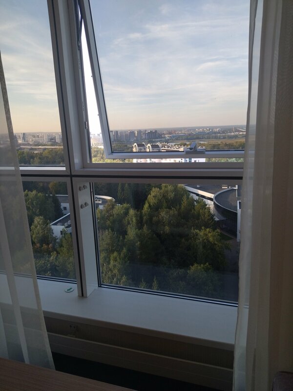Номер с двумя кроватями, матрасы, подушки, одеяла чистые, удобные. Гигиенический набор, халат, тапочки. Уборка каждый день. В номерах тихо (14-й этаж), чисто. На этаже куллер, панорамные окна плюс кресло - наслаждаться видами Казани. Есть фитнес, бассейн (250₽) с 7 до 22 на 12-м этаже. Завтраки - шведский стол, на любой вкус. Фрукты спелые, сочные; творожная запеканка - во рту тает! Повору СПАСИБО. Чай, кофе, соки, каши, блюда из яиц, нарезка и многое другое.