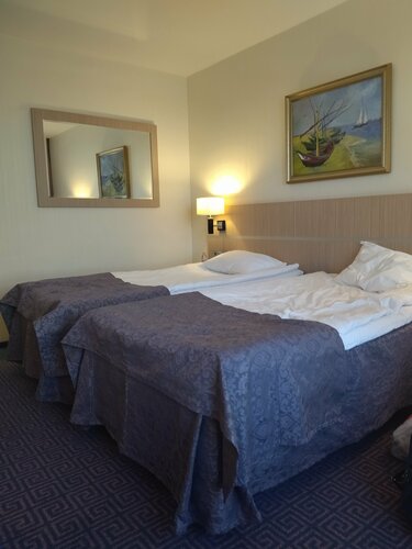 В нашем номере было достаточно чисто, за исключением паутины в углах. Номер из двух комнат, холодильник,телевизор всё работало. Чистый комплект столовых приборов. Постельное бельё чистое, матрасы не пролежанные, ровные. Завтраки очень приличные для 3-х звезд, на все вкусы. Расположение удобное. Персонал приветливый.