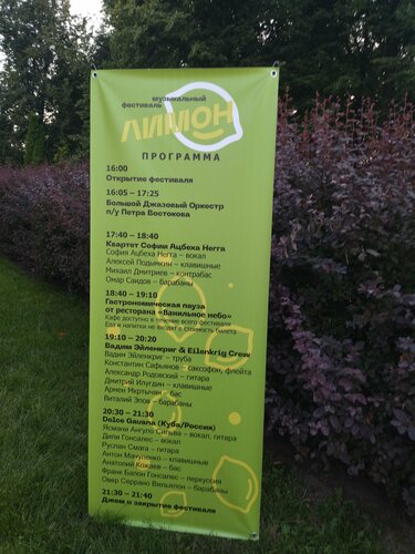 Джазовый фестиваль Лимон, всё организовано отлично. Фуд-корт, сцена, сам парк. Чисто, удобно, красиво, интересно.