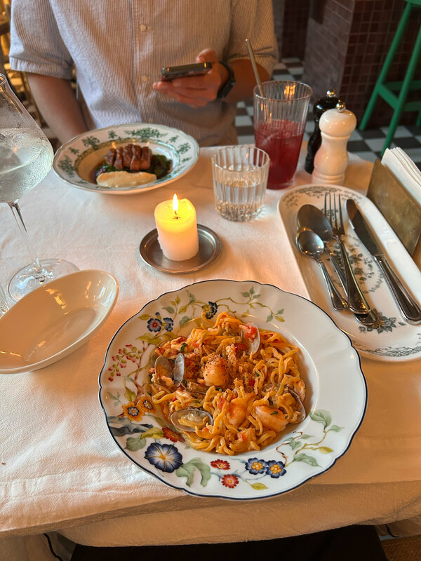 От такого места ожидаешь большего. Само бистро имеет вход только с улицы, очень уютная «камерная» атмосфера внутри. Чистые столики с красивой посудой. Вкусные напитки и неплохие салаты. Остальные блюда оказались просто ужасными. Брали на пробу: Луковый суп — 0/10 возможно это блюдо просто не для меня Паста с трюфельным маслом— 5/10 жирная текстура блюда, паста не твердая, скорее вермишель, ее не готовят, а покупают Салат с креветками — 10/10 вкусная заправка, сочные креветки Салат с крабом — 10/10 для такой порции краба было много На десерт черничный сметанник, блинчики и каннеле. Большой выбор хороших безалкогольных коктейлей. Десерты в целом достаточно посредственны, сметанник был магазинного уровня, кануле немного передержали, ну а блины просто сложно испортить. К жене несколько раз подходили официанты, но нож к десертной вилке для блинчиков принести так и не догадались. Рядом с площадью есть достаточно мест где готовят вкуснее и интереснее. Второй раз я данное место скорее всего не посещу.