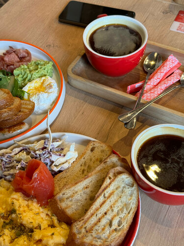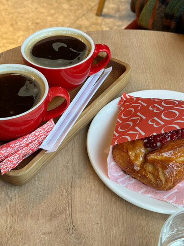 Любимое место для завтраков рядом с домом! Вкусные слойки с ягодами, особенно с брусникой и вишней! Нравится, что есть сезонное меню. Также хорошие предложения и акции можно увидеть в приложении! Приятный интерьер и очень приветливый персонал :) Важное преимущество, можно с собакой! И для неё всегда модно попросить водичку ☺️