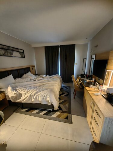 Парковки рядом полно. Сам отель, не тянет уже на 4 ⭐ а жаль. Номера небольшие, и темные это -.но есть + это балкон. Уборка тоже страдает, за 5 дней не убрали коробку от предыдущего посетителя. И проблема с кухней. Официанты и повара не справляются. честно, не вкусно. Да ты не голодный, но желания есть нет( столов не хватает. Бассейн с подогревом это супер, тк ветрено. Рядом много кафе и местная еда очень даже. На пляж возят утром. Но мы ездили сами и во второй половине. Рядом стройка, утром мешала выспаться. Душ небольшой. Зато милые коты это прям +. Но блюда и питание, надо поменять.