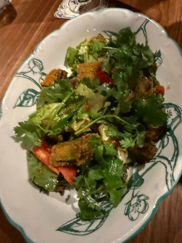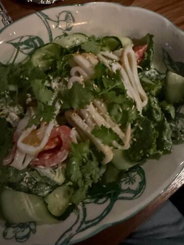 Ремонт устарел. Официанты стараются. Салат меня разочаровал - морепродукты пересолены и на вид как будто из уже кто то ел… горячее нормально. Раньше было вкуснее
