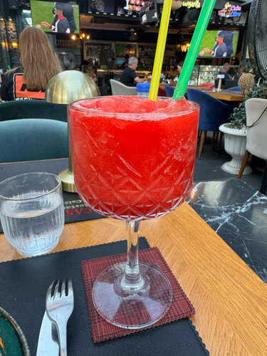Отличное место. Персонал весь крайне дружелюбный. По-русски не разговаривают, но меню на русском есть. Порции очень большие и порой 1 на 2 хватает. Были в июле, чтобы попасть на ужин надо или бронировать заранее или приходить часов в 6-7 вечера. К 9, как правило полная посадка независимо от дня недели. Цены довольно высокие, но качество еды на высоте. Поразили коктейли - их приносят в объеме 0,5 литра. Для меня было перебором.